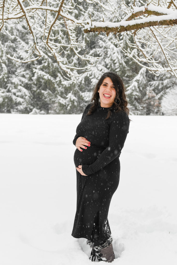I found out that my sister hasn’t taken many photos of herself during her pregnancy. I feel like you should have at least one photo of yourself in each trimester. However, she has been really sick during her pregnancy and speaking from experience of being sick it’s really hard to feel excited and want to do anything when you are so sick. So, I made her come out in the winter wonderland to take a couple photos to look back on and remember how sick she was LOL! It is so worth it though once you have that little nugget in your arms. I can’t wait to meet theirs! They don’t know what they are having which is so fun to anticipate and make guesses. I am eyeing all the bows and cute girl clothes incase she has a girl since I am in full on trucks and ball land over here with two little boys.