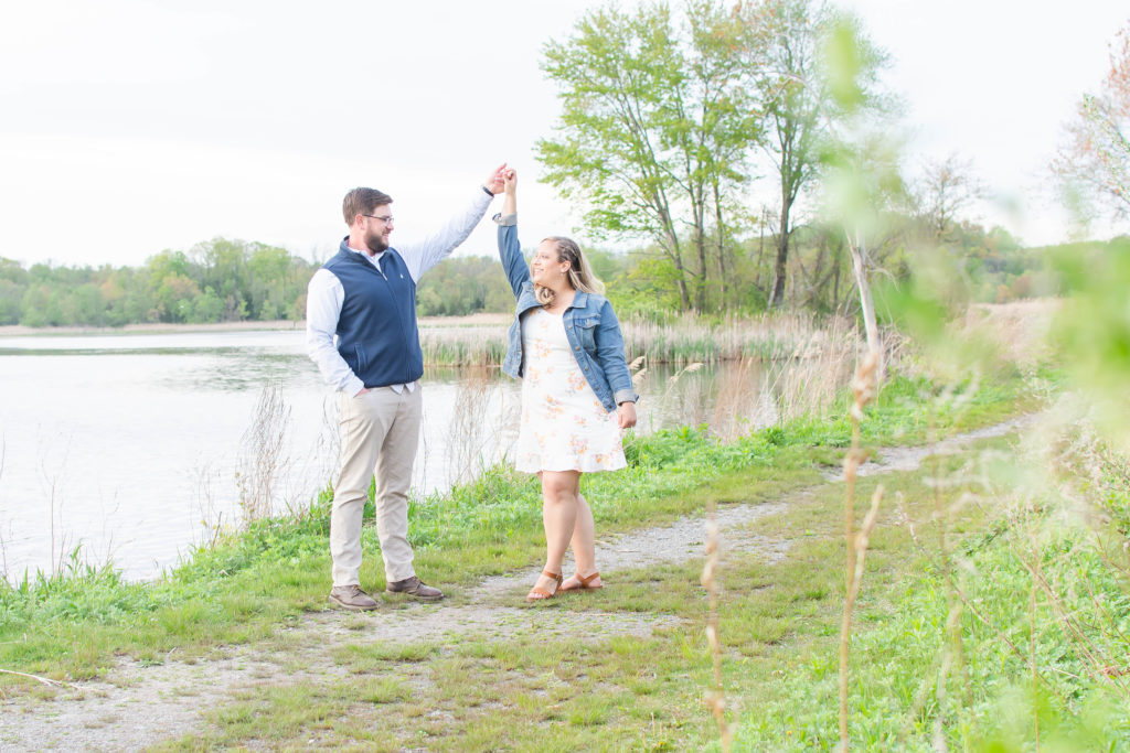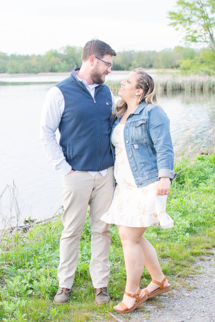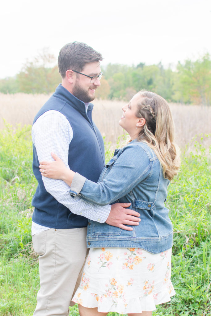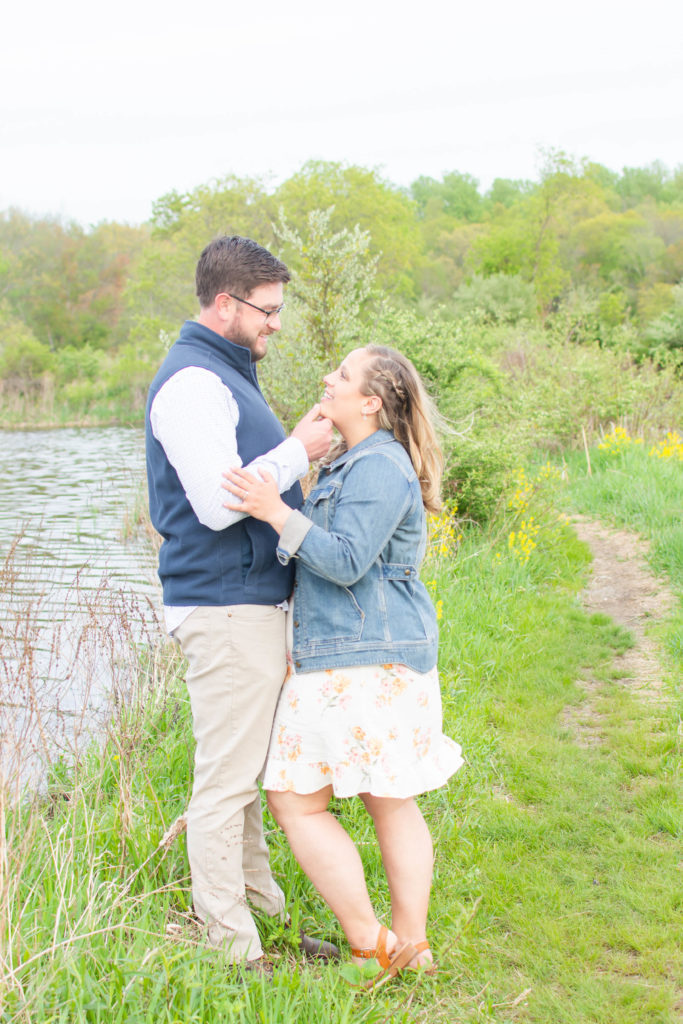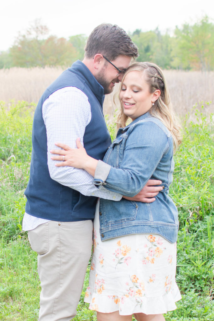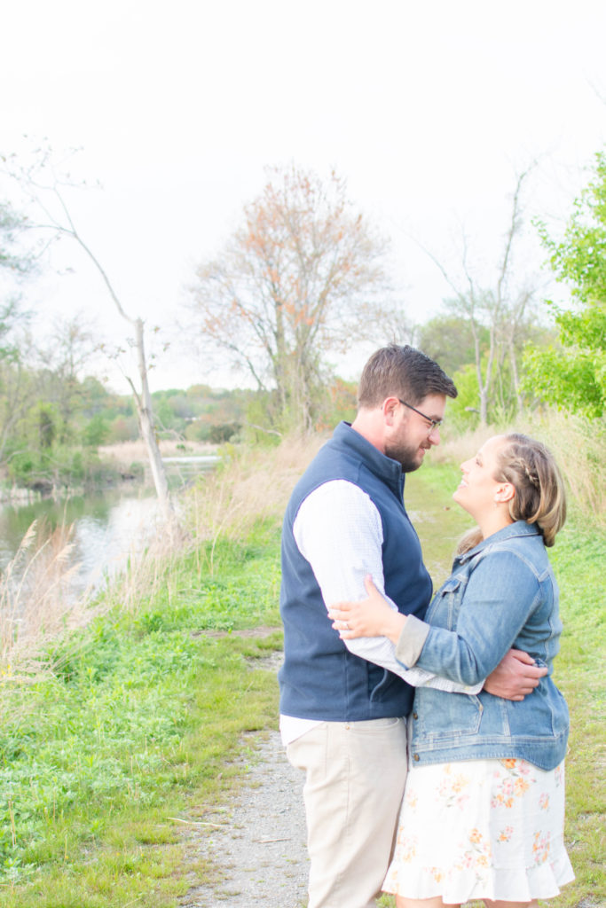 Alyssa and Matt are the sweetest! I use to work with Alyssa, so this was such an honor for me to take her engagement photos! Matt and Alyssa grew up in the same town and fell in love! Matt and Alyssa have been dating for eight years and on the day before her Christmas Eve birthday Matt asked her to marry him. He cooked her a beautiful steak dinner and surprised her with the proposal afterwards at their house. Alyssa says, “I love that Matt feels likes home to me. He is my comfort. When he is near I feel grounded and supported.” And this is how Matt describes Alyssa, “I love Alyssa because she is always there for me. Alyssa is the most helpful person I know. Her desire to always care for and nurture me is incredible. She always tries to be the best partner and person she can be. I am lucky to have her and I can’t wait to be her husband.” Aren’t they the sweetest?! They are planning an intimate wedding up in Maine for next year- it sounds like it is going to be beautiful! We took these photos at a park that they take walks at with their dog, Bailey, all the time! It is so beautiful and I’m glad I got to come along on their walk this time! I really enjoyed spending time with them they are both so easy to be with!